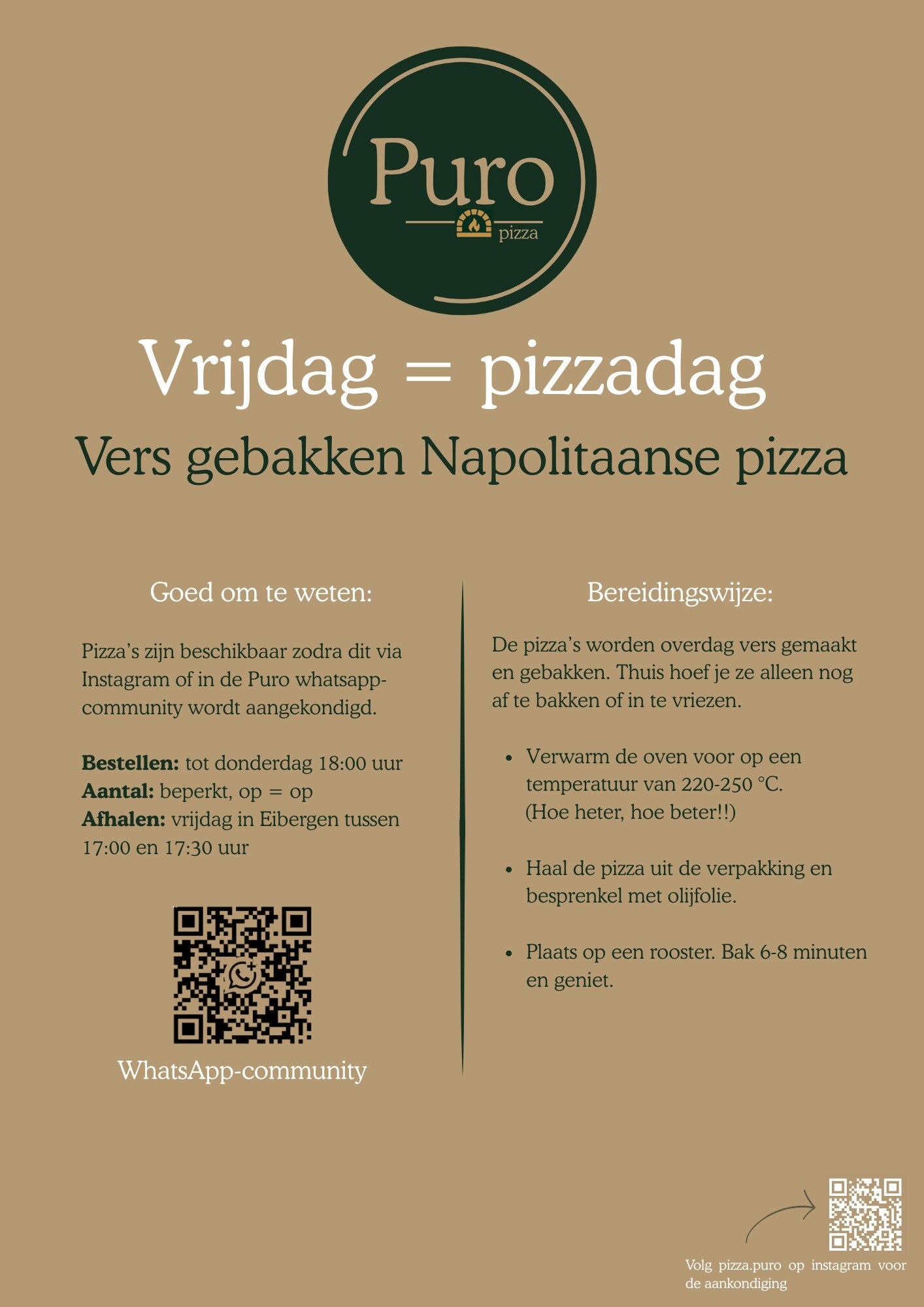 Volg @pizza.puro en blijf op de hoogte van de volgende pizzadag!